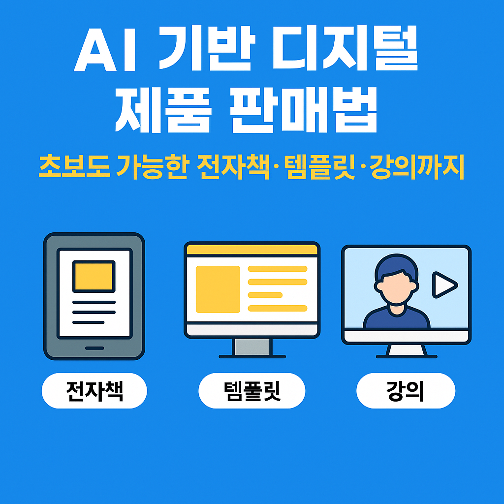 “디지털 제품? 나도 만들 수 있을까?”많은 분들이 “전자책이나 강의는 전문가만 하는 거 아냐?”라고 묻습니다.하지만 지금은 다릅니다.AI 도구 덕분에 초보자도 전자책, 템플릿, 심지어 강의까지 만들고 팔 수 있는 시대입니다.글쓰기? → ChatGPT가 써줍니다디자인? → Canva가 만들어줍니다정리? → Notion이 도와줍니다이제 중요한 건 당신의 아이디어를 수익화하는 구조입니다.이번 글에서는 AI 기반 디지털 제품 3가지와 제작+판매 루틴까지 전부 정리해드립니다.본문 – 디지털 제품이란? 왜 AI로 더 쉽게 만들 수 있을까?디지털 제품이란?→ 실물 없이 온라인에서 다운로드, 열람, 수강이 가능한 상품입니다.대표적인 디지털 제품 유형전자책 (PDF 형태로 판매)템플릿 (Notion, Excel, Ca..